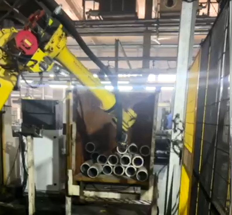 采用3D結構光相機實時定位缸套姿態,然后控制機器人將缸套從料框中抓取到產線上進行加工。該系統可以根據周邊設備干涉及產品姿態實現自動避障, 選擇時間最短或距離最優的路徑,自動規劃抓取以及從料框退出的軌跡。