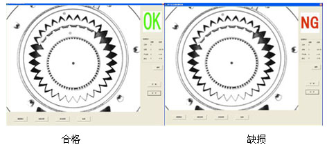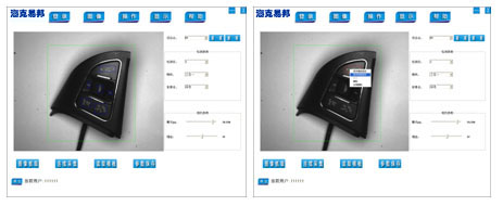 系統采用進口高分辨率CCD相機,可以快速獲取汽車車燈頭上的圖像,通過圖像識別、分析和計算,采用灰度對比提取檢測汽車車燈頭黑頭、焊片不良、歪頭、裂紋等缺陷。并輸出相應檢測合格/不合格信號提示,以便于人員對缺陷品的處理。