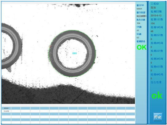 系統(tǒng)采用進(jìn)口高分辨率工業(yè)相機(jī),可以快速獲取圖像,通過圖像識別、分析和計(jì)算,實(shí)時(shí)偵測紐扣生產(chǎn)中是否出現(xiàn)不良品,并輸出相應(yīng)檢測信號提示,以便于對有缺陷的產(chǎn)品進(jìn)行處理。